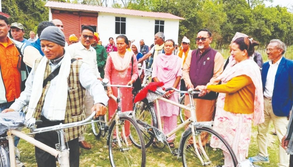 कोहलपुर, चैत १७ बाँकेको बैजनाथ गाउँपालिकाले थारु समुदायका बडघर र चौकीदारलाई उनीहरूको दैनिक कामकाज सहज बनाउन साइकल वितरण गरेको छ । गाउँपालिकाले यसका लागि चार लाख रुपैयाँ खर्च गरेको जनाएको छ ।